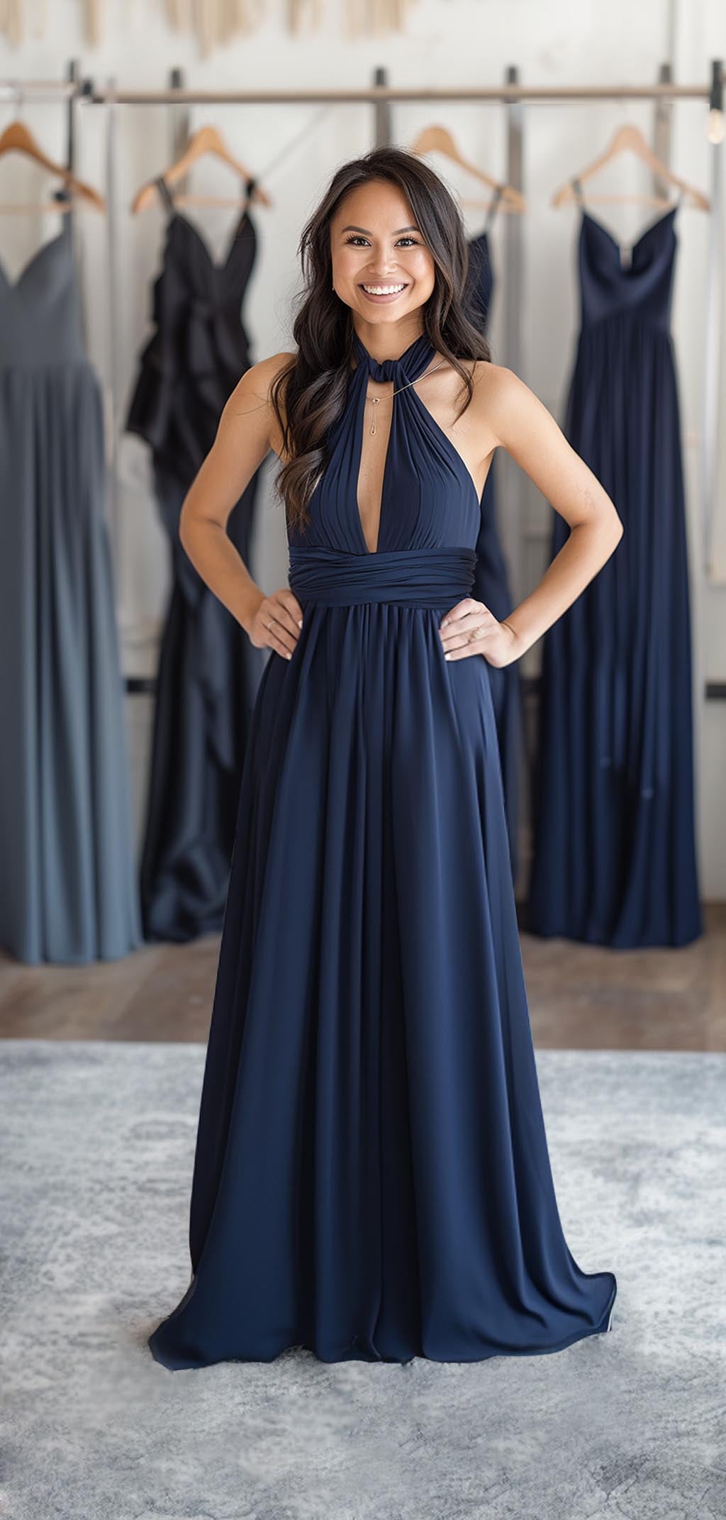 This dilemma made Tina ponder: why not design a dress that is rich in color, flexible in size, and varied in style to meet everyone's needs? Tina spent countless nights at her drawing board, and finally, she created a multi-functional dress—the Infinity Dress. This dress can be styled in numerous ways to suit different occasions and personal tastes while remaining comfortable and elegant.